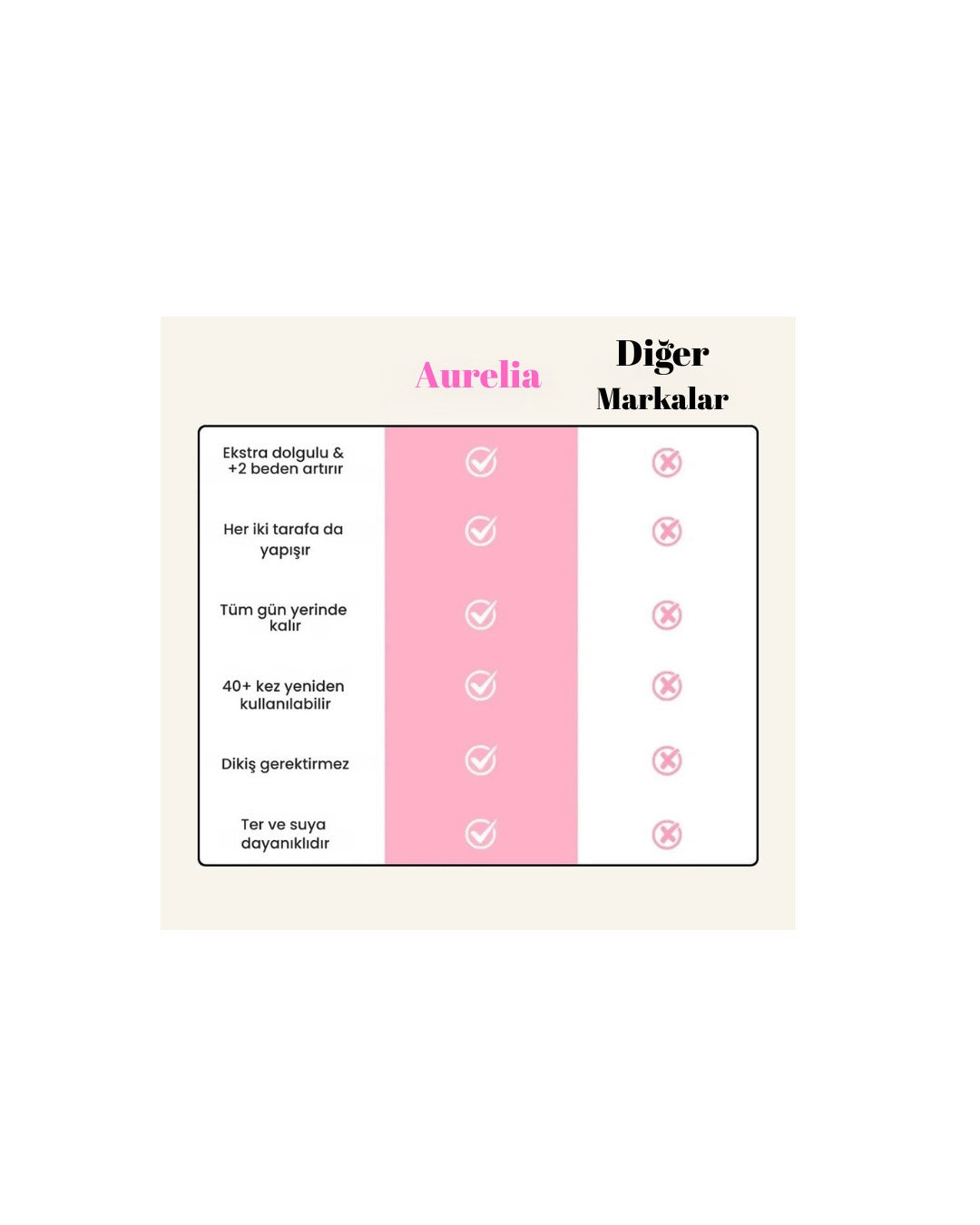 Unutmayın: Aurelia pedleri bir yapışkan sütyen değildir ve öyle kullanılmamalıdır.